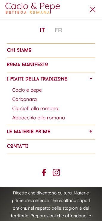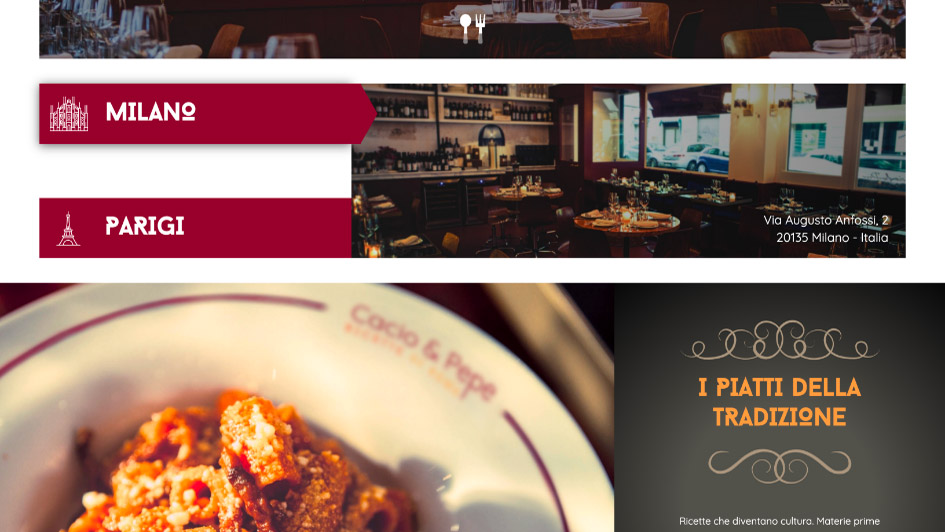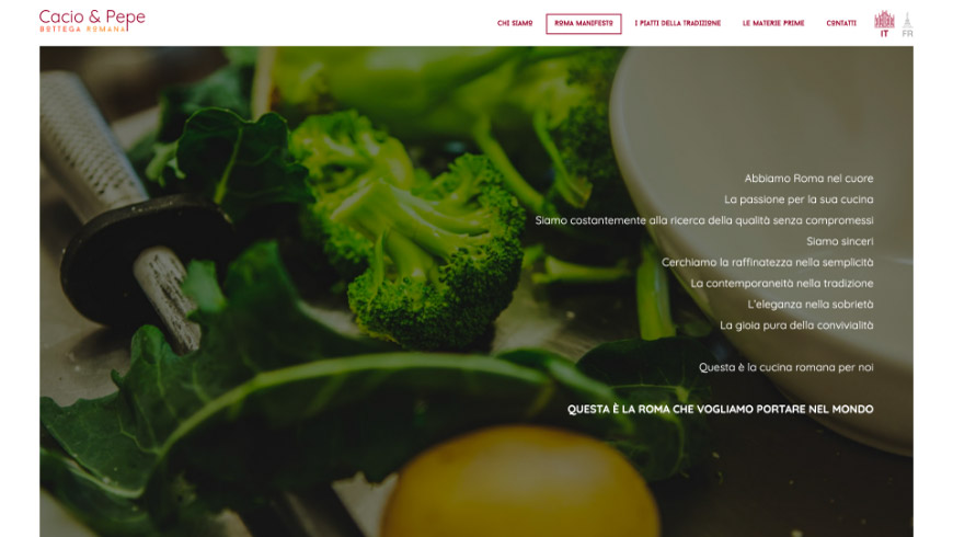 Il ristorante Cacio & Pepe Bottega Romana, con due locali situati a Milano e Parigi, si rivolge a IC DIGITAL con la necessità di un restyling d’immagine e la creazione di una nuova brand identity, con l’obiettivo di comunicare la sua passione per una cultura gastronomica di grande tradizione, insieme all’attenzione per la scelta del prodotto e alla qualità riposta nella preparazione dei piatti.